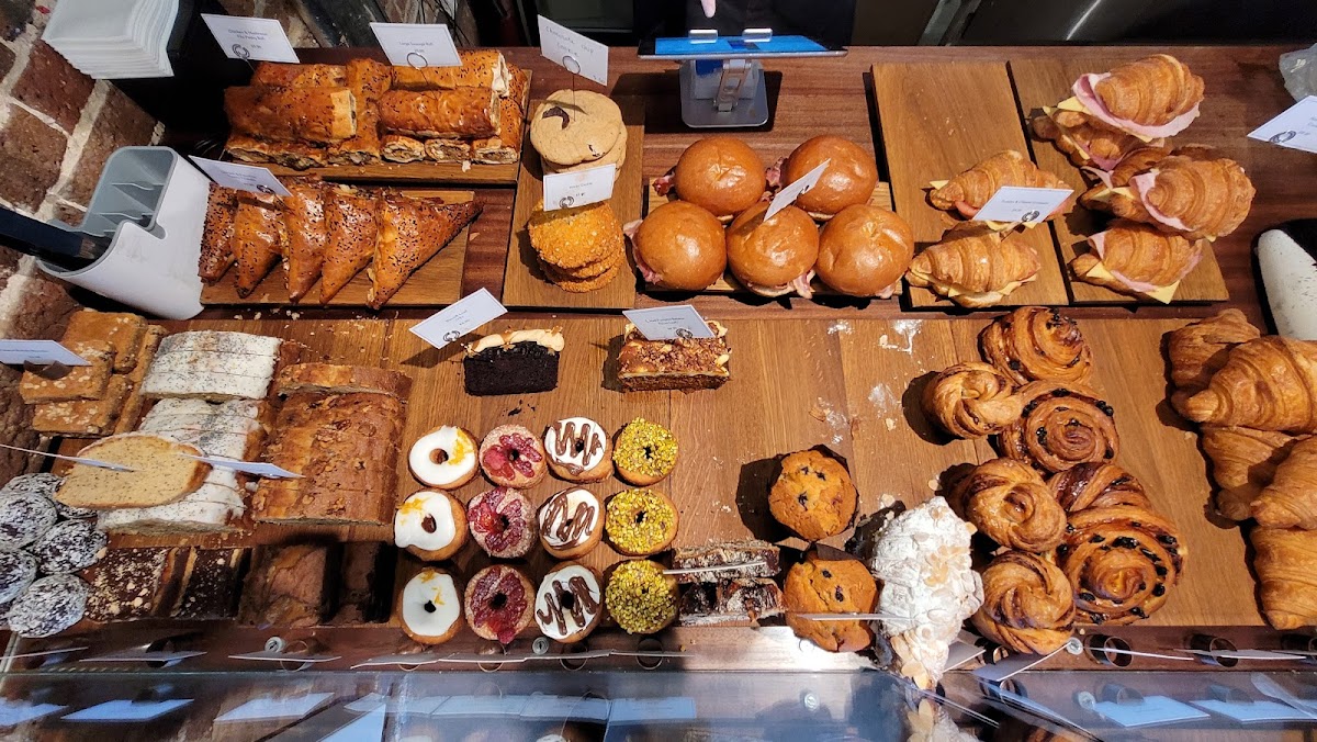 If you're a fan of traditional baked goods, the Croissant, Pain Au Chocolat, and Brioche are perfect choices to pair with your cup of coffee. The café also caters to those with dietary preferences, offering items like Vegan Banana Bread and Blueberry Muffins for a delightful, plant-based experience.
